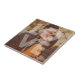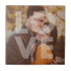 This modern tile features the word "Love" in big letters and a picture of the couple in the background. The letters have a transparency effect that shows the picture underneath. The design has a light orange tint that will cover the photo. This tile makes a perfect gift for a couple that got engaged or married, or just for a couple that loves each other.