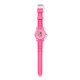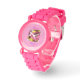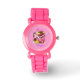 Pink glitter strap watch that says, "Love" with floral design licensed from Graphics Factory, with MoonDreams Music logo