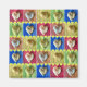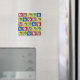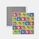 Rows of heart shaped potato chips on various colourful squares in rainbow colours, is printed on magnets. Each heart is on an individual square. The colourful squares form rows which are divided by a row of small yellow hearts. The background at the top and the bottom of the hearts is yellow too, and it can be customized to any colour of your selection. Thank you for shopping at CherylsArt on Zazzle.