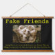 Puppies together in one basket with a fake friends quote