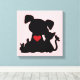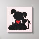 Love Puppy and Kitten Silhouette Pink Canvas Print