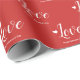 Valentine’s Day wrapping paper with a red and white, word pattern, design for Valentine's Day. All of the text can be customized.