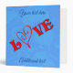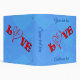 Love with a red heart on a blue hearts background. Add your text and personalize. Design by Susan.