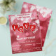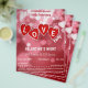 Valentine's Day illustration featuring hanging red hearts with "LOVE" letters on a bokeh background. Romantic Valentine's Night Event flyer with fully editable text.