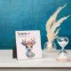 A photo plaque with an adorable illustration. A sweet baby deer with big eyes, antlers and a little butterfly friend. Darling design. Text says: Someone is thinking about you. With a little heart decoration. Cute and whimsical.