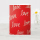 This card is filled edge to edge with the word “love” repeated again and again, creating a close, all-over pattern that feels like an endless chorus ❤️. A deep red background sets the scene, like a wall washed in crimson light, while the lettering stays bright white for sharp contrast. Each “love” is written in a flowing, cursive style, and the slight wobbles in the strokes make it feel like someone kept writing the same word while smiling 🥰. The repetition turns the page into a cozy backdrop for romance or friendship, as if the word is being said softly on repeat. The text isn’t centered or framed; it spreads across the entire front, with the words angled and layered so your eyes keep moving. Some letters look a bit thicker or more textured, like brush or chalk marks catching on paper. The white “love” words overlap and weave together over the red field, with the pattern running right up to the edges.