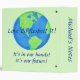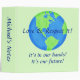You can fully customize this notebook album for your needs for notes, photos, class, a planner or anything else. The notebook art and words promotes our earth - Love it and Respect it. The art and message is great for Earth Day and all year long to show how you feel about ecology and conservation to protect and save the earth. All the words "Love & Respect it" on top of the planet earth globe, and the words "it's in our hands" and "its our future" below the blue and green earth on the front and back can be changed to your own words. The spine can be changed to label your notebook for your use. The earth globe is original art by Phyllis Dobbs and is on a lime green background. This notebook is great to foster respect of the earth. This art is available on other items and with other colour backgrounds in this store.