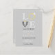 LOVE — done in a modern lacy style with diamond ring and grooms lapel. Customize this save the date postcard with your own text. Original illustration by pj_design.