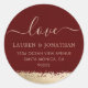 Love Script, Burgundy and Gold Foil Wedding Classic Round Sticker