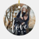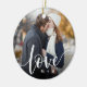 Love Script Overlay Photo & Initials Ceramic Ornament