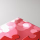 4 red puzzle pieces with the lettering "LOVE" on a bokeh background.