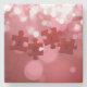 4 red puzzle pieces with the lettering "LOVE" on a bokeh background.