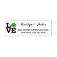Create your own custom, personalized, cool, stylish, lovely, classic, love green shamrock Irish three leaf clover elegant script return address label. Simply enter your name / bride & groom's / wife & husband's names, and address. Elegant return address labels for use on st. patrick's day, valentine's day, wedding, marriage anniversary, birthday, bridal shower, baby shower, christmas, holidays, or any other Irish special occasion related mailings.