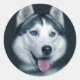 Aww...Who can you resist the cute face of a Husky puppy dog? These fun canine stickers features an image of an beautiful blue eye Siberian Husky dog highlighted by a dark grey background. This sweet pup is ready to help you send smiles to family and friends.