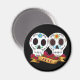 Happy and in love, these sugar skulls rest on a banner that says "Amor". They'll put a smaile on your face all year long, and the background colour is customizable!