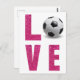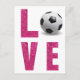 Love Soccer word design with hot pink faux sparkle letters and the "o" is replaced by a soccer ball.