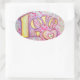 Watercolor painting of the golden yellow word "Love" with a double heart. Pink and purple highlights the letters and heart. A light splash of glitter across the top gives the painting a sparkly glow. Personalize this love word art sticker with your own text and images using the "Customize It" button.
