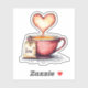 Steam rises out of a tea cup making a heart shape. A tea bag with "Love" typed on it rests beside the cup. This cute design is perfect for tea lovers on Valentine's Day.