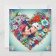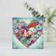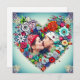 Pretty teal background with red roses and colourful flowers whimsical folk art style floral heart. Add a picture of you and your partner in the personalize area. Sweet romantic gift for Valentine's Day, Christmas, a birthday, anniversary or any romantic occasion.