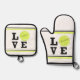 Love Tennis Ball Personalized Name Oven Mitt & Pot Holder Set