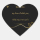 black heart-shaped sticker with the text, remember my heart holds you, when my arms can' in gold