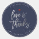 Love+Thanks, Modern Script Silver+Navy Blue Classic Round Sticker