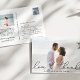 A modern and elegant photo thank you postcard designed to accommodate your favourite horizontal or landscape oriented wedding photo with "love and thanks" as a soft black script text overlay. Personalize with your names and/or wedding date beneath.