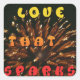"LOVE THAT SPARKS" Text: The central phrase conveys a message of passionate and exciting love. The text is stylized with rounded edges, giving it a slightly retro feel that adds charm to the design.