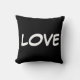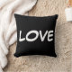 Dark pillow with LOVE in white. Grade A cotton, 16x16 throw.