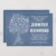 blue modern love tree bridal shower invitation with carved heart and your initials.