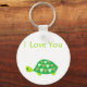 Love Turtle keychain. Customizable keychain has a cute green love turtle with the words I Love You.