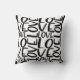 A gorgeous black and white typography pillow. The pattern consists of the text 'love' in a modern and stylish font. This would make a great gift for bridesmaids at a wedding, or as a Valentines day present. Or a cute minimalist home decor accent.