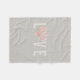 Snuggle up in this beautiful fleece blanket that has large letters that spell LOVE with the "O" filled with a decorative pink heart button that even has a faux stitch! Off-white letters on a light grey background. Perfect and unique home decor accent for the farmhouse to boho style home by Farmhouse Living.