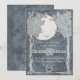 A line drawing in off-white of a whimsical smiling full moon in a starry sky looking down into a clearing between two trees whose roots intertwine in the centre of the design to form a love heart. Where applicable, the names of the bride and groom are separated by a vintage stylized ampersand over an intertwined vine motif. The opaque, slightly distressed background design gives a vintage feel and the floating quality of the design allows for your choice of background colour so that one can co-ordinate products with your special day's theme. The design works best on dark coloured backgrounds.
