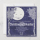 A line drawing in off-white of a whimsical smiling full moon in a starry sky looking down into a clearing between two trees whose roots intertwine in the centre of the design to form a love heart. Where applicable, the names of the bride and groom are separated by a vintage stylized ampersand over an intertwined vine motif. The opaque, slightly distressed background design gives a vintage feel and the floating quality of the design allows for your choice of background colour so that one can co-ordinate products with your special day's theme. The design works best on dark coloured backgrounds.