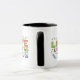 The mug design features the message "Love Unites Us" in a bold, multicolor display. Each word is a different vibrant colour, creating a sense of energy and inclusivity. The text itself has a clean, modern font that stands out clearly on the mug.