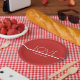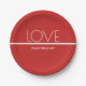 Paper Plates with a red and white with a minimal design for Valentine's Day. All of the text can be customized.