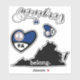 A sheet of 3 different sticker designs, featuring Virginia map and state flag.