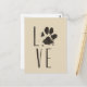 A postcard with a cute illustration of a sketched dog paw print in brown with a grunge style. The letters spell out the word "Love" with the paw print in place of the letter "o". Awesome for pet lovers.
