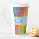 This mug would make a lovely gift for someone you love a latte! Fill it with a bag of their favourite candies or a sweet little bouquet of flowers. Birthday, anniversary, Mothers Day and more. Or you can personalize this mug with a name or another message. An impressionistic rainbow and an array of hearts make this mug a modern work of art for anyone you know!