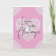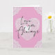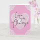 This card says Love you Always on the front along with a romantic lace heart design on a pink background, The inside features a customizable greeting which says “Happy Valentine’s Day my love!”
