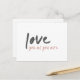 Modern, minimalist “Love you as you are” inspirational quote postcard in a stylish off black with dusky blush pink accent in a hand painted style typography with Scandinavian minimalism style and inspired by romance, encouragement, inspiration, motivation, friendship, kindness and travel.