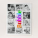 “Love you Bubbie.” She’s loving every minute with her grandkids. A playful, whimsical, stylish visual of multicolor rainbow bold typography and black handwritten typography overlay a soft, light pink heart and a white background. Add 10 cherished photos of your choice and customize the names and message, for the perfect modern, stylish, personalized photo collage jigsaw puzzle she’ll always treasure. Choose black and white photos for an elegant look. (ADDITIONAL PHOTO TIP: Pre-crop your photos into similar shapes and/or have the subjects in the middle BEFORE uploading.) Available in five different sizes. A great Jewish keepsake gift for your bubbie on Mother’s Day, Hanukkah, her birthday, or other holidays.
