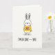 This card shows a simple drawing of a white rabbit standing in the middle of an off-white background. The rabbit has its eyes closed, pink cheeks, and a small calm smile that feels shy and sweet ❤️. It’s holding a bright fuchsia heart close to its chest with tiny paws, making the heart the main focus 💘. The rabbit wears a sunny yellow top, and thin black outlines define its shape clearly. A soft gray shadow under its feet helps it feel grounded on the page. Near the bottom, the card reads “I’M IN LOVE — YOU.” in a hand-drawn style, in black, placed under the rabbit. The dash in the middle makes the message feel like a little pause, like someone saying it softly 😘.