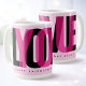 This "Love You" Valentine's Day coffee mug can be personalized with a name and custom text. A stylish design featuring a contemporary look with overlapping, semi-opaque typography. The text wraps around the mug, forming bold, geometric shapes that reveal the words as you rotate it. This modern design also suits a birthday, wedding anniversary, special occasion, or just because! Perfect for a girlfriend, boyfriend, husband, wife, daughter, or best friend. Printed colors: light pink, pink, black and white.