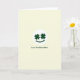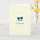 This card features a simple face centered on a pale cream background that feels like soft linen, with a white circle framing the design. Inside the circle, two deep green shamrocks sit like eyes, angled in a way that suggests a sweet, attentive gaze 💚. A curved green line beneath them forms a gentle smile, giving the little character a friendly, affectionate look. The limited palette keeps the focus on those clover eyes and that calm grin, like a quiet moment shared between close family. Just below the circle, the message “Love You Dear Mom” appears in the same forest-green color, set in a neat sans-serif style and centered on the page ☘️. The text sits with comfortable spacing under the face, so it reads clearly without crowding the artwork. The cream background remains open and uncluttered all around, with the white circle and green details staying crisp at the center.