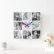 Just replace the 8 sample photos with ones your own, add names, message, and/or date, and you can easily personalize this custom keepsake photo collage wall clock. Please message me with any questions or requests.