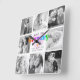 “Love you Grammy.” She’s loving every minute with her grandkids. A playful, whimsical, stylish visual of colourful rainbow coloured bold typography and black handwritten typography overlay a soft, light pink heart and a white background. Add 8 cherished photos of your choice and customize the names and message, for the perfect modern, stylish, personalized photo collage wall clock she’ll always treasure. Choose black and white photos for an elegant look. (ADDITIONAL PHOTO TIP: Pre-crop your photos into similar shapes and/or have the subjects in the middle BEFORE uploading.) Choice of round or square shape, framed or unframed. A great keepsake gift for your grandma for Mother’s Day or her birthday.