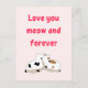 Send purr-fectly sweet wishes with this adorable postcard! Featuring a cute cat design on a pink background with the loving message, "Love You Meow and Forever," this card is ideal for Valentine’s Day, anniversaries, or just to say ‘I love you!’