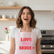 Cook, bake, and celebrate love in style with this “Love You More” pink apron. Featuring bold retro-inspired typography in red and pink, this design adds a sweet and playful touch to any kitchen.